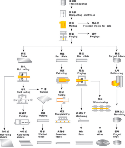 Allgemeiner Produktionsprozess von Titanstangen, Draht und Platte